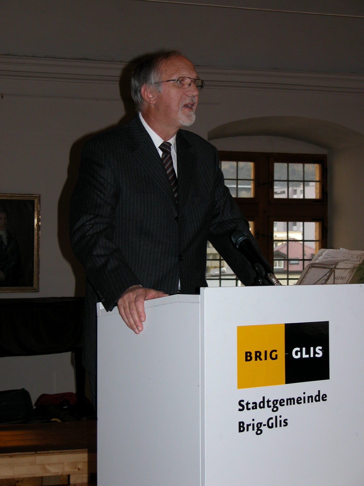 Aufrichtigen Dank schulde ich sodann der Gemeinde Brig-Glis, die uns heute diesen herrlichen Saal zur Verfügung stellte und uns nach der Feier einen Aperitif spenden wird. Ich absolvierte in dieser Gemeinde ein achtjähriges Gymnasium und bin nun mit meiner Familie seit 42 Jahren hier ansässig. Ich konnte hier Freunde finden und Gemeinschaft erleben. Dafür bin ich sehr dankbar.