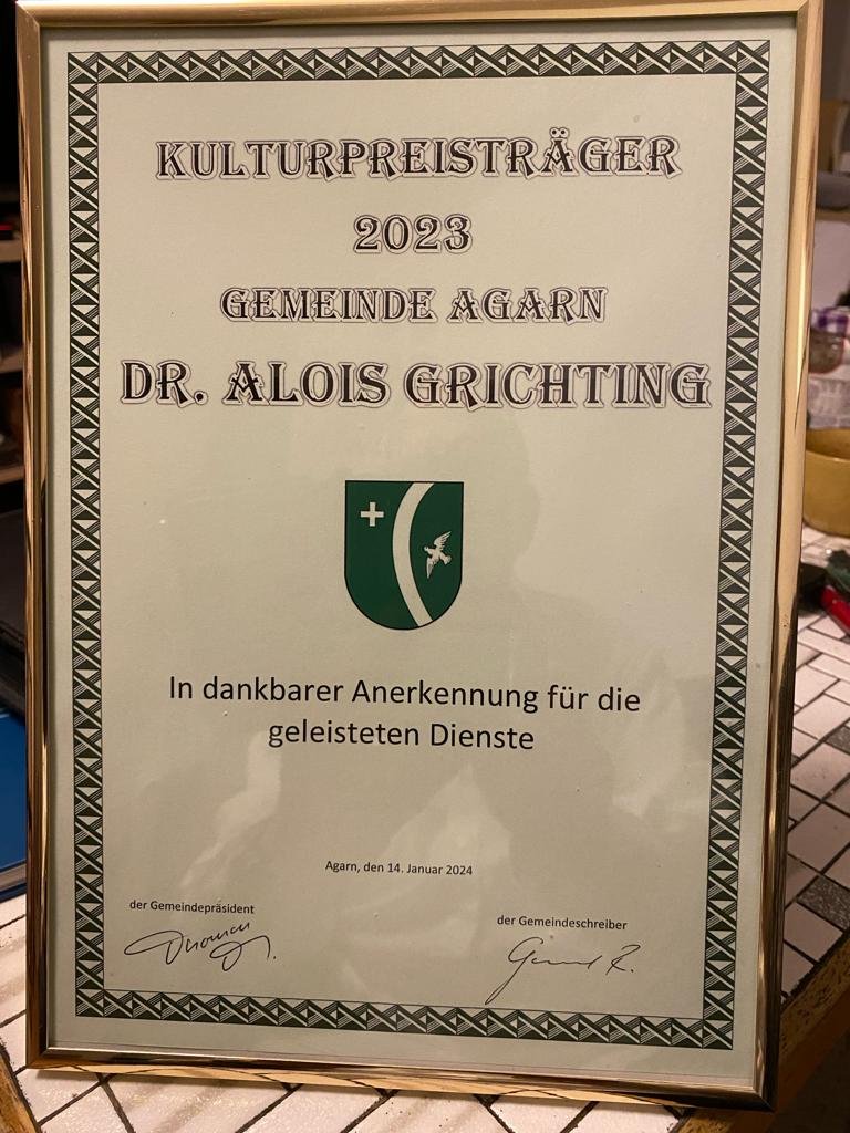 Kulturpreis 2023 Agarn an Dr. Alois Grichting: Fotos: Dr. Thomas J. Grichting