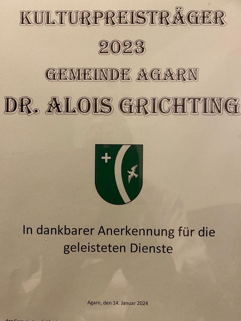 KULTURPREIS 2023 DER GEMEINDE AGARN AN